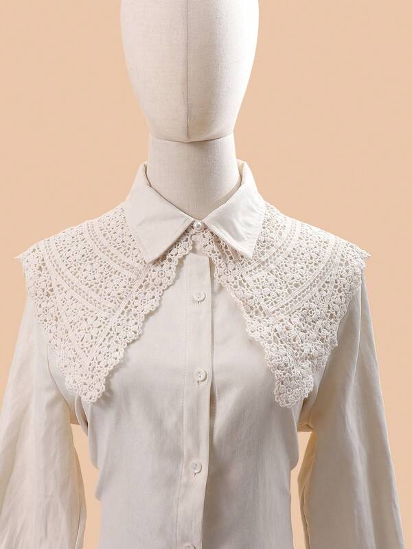 1pc Women'S Solid Color Hollow Out Pearl Decor & Sweet Doll Collar & Floral Edge Knitted Decorative Shawl Suitable For Daily Wear