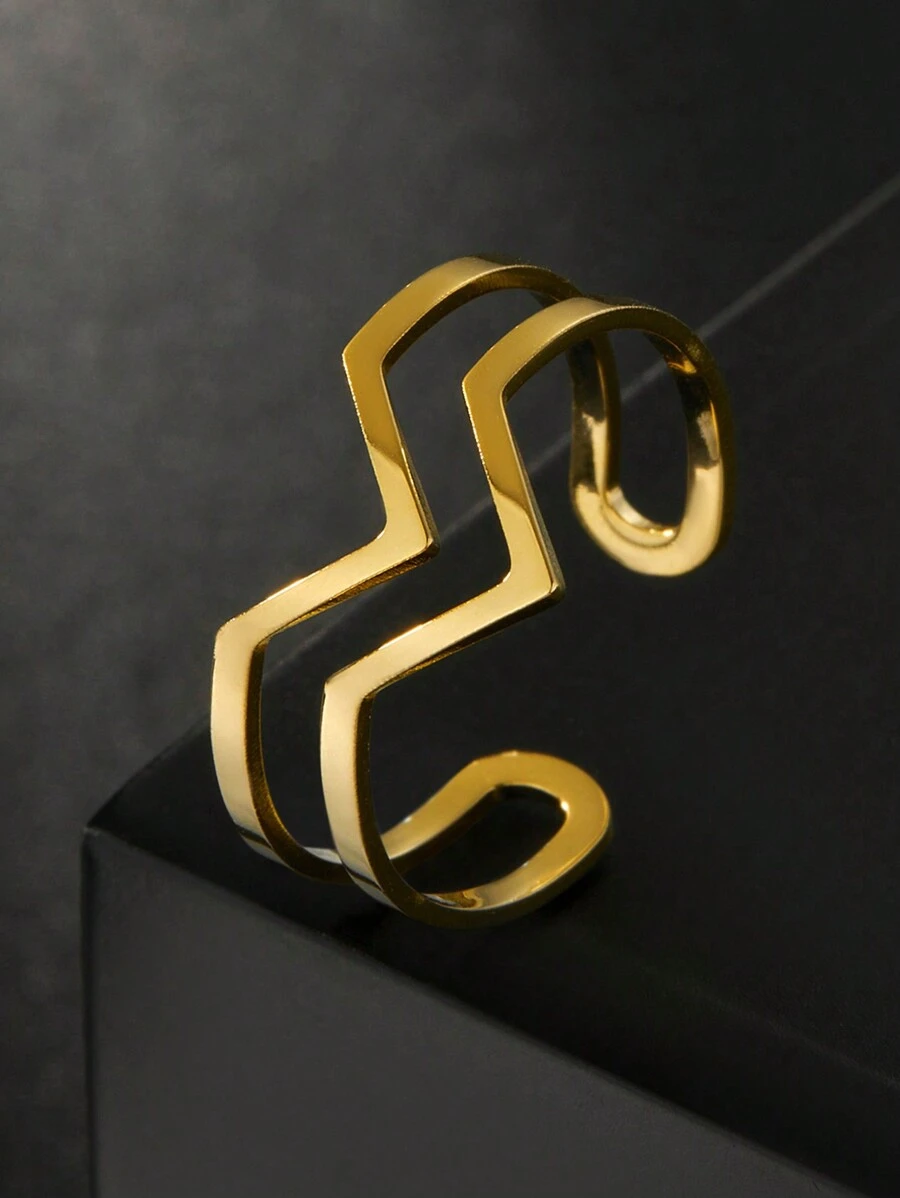 1pc Women'S Stainless Steel Simple Geometric Double V-Shaped Ring, Minimalist Open Ring For Fashionable Gift Giving