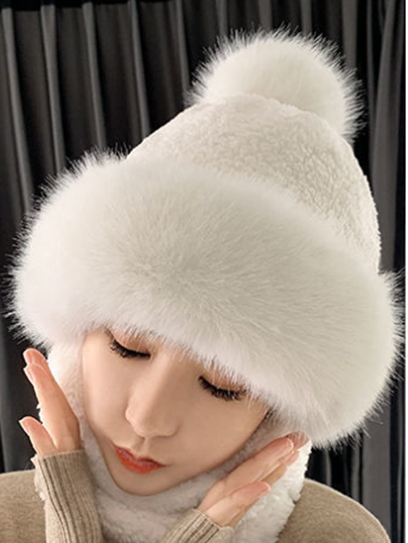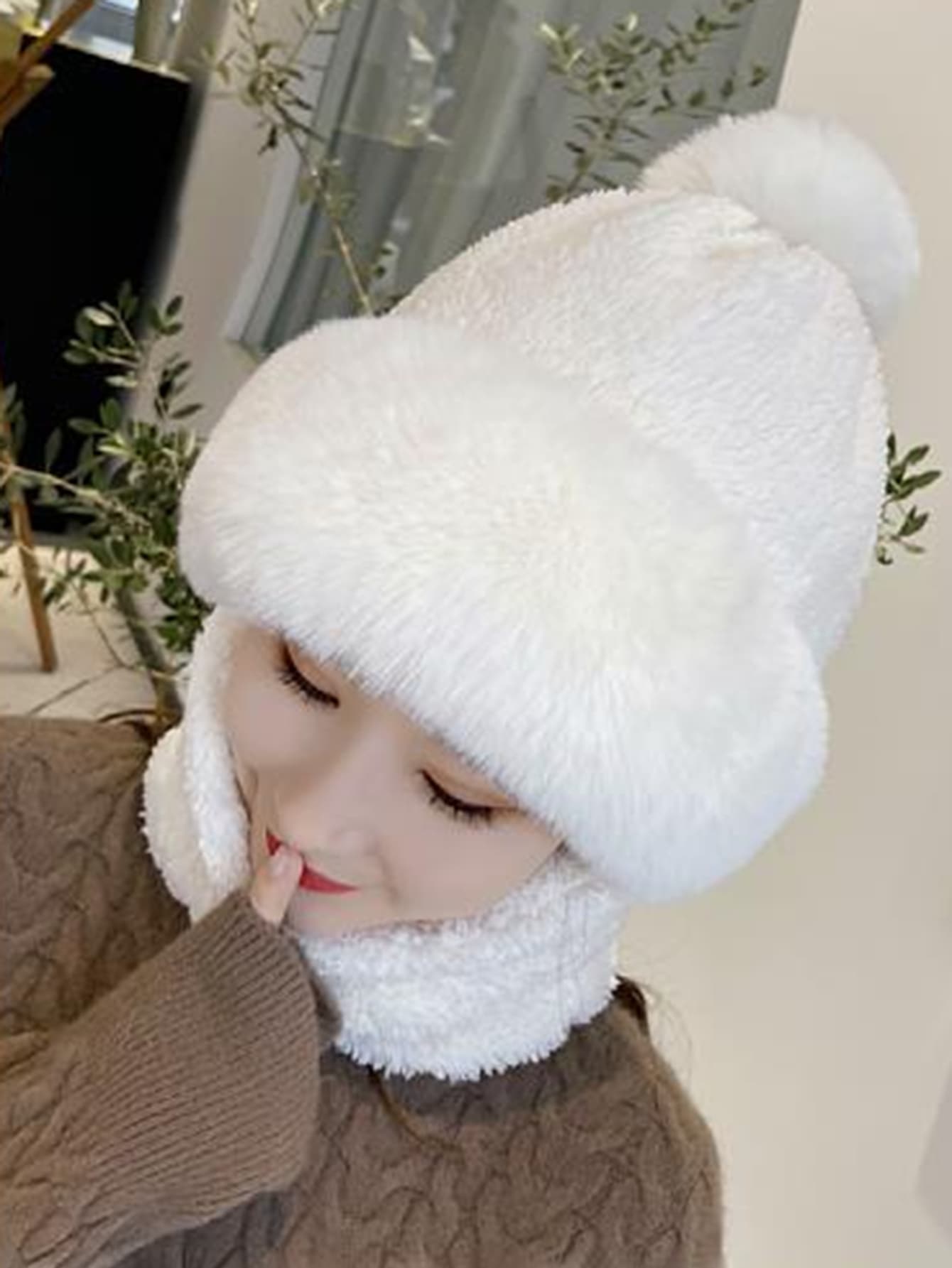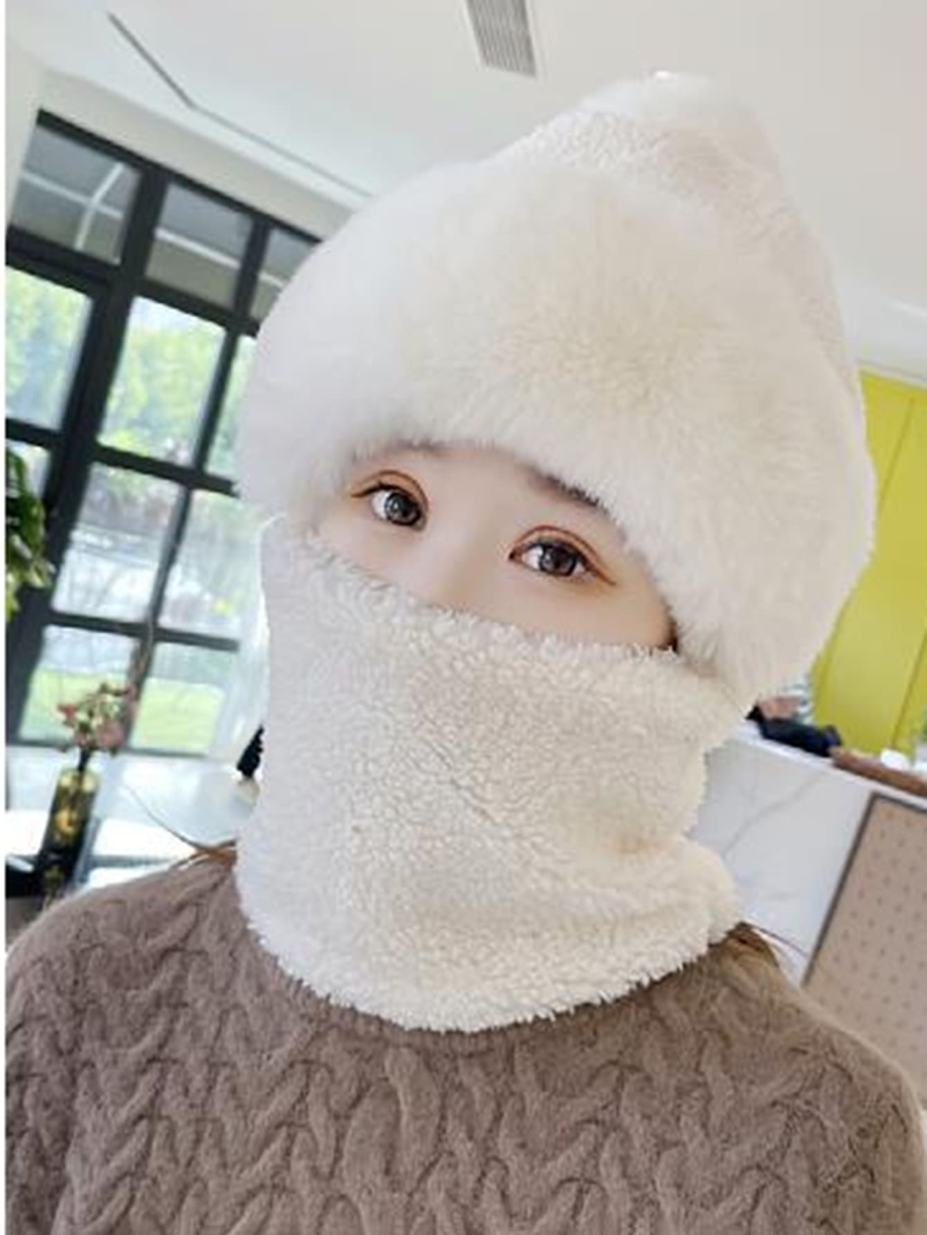 1pc Women'S White Windproof Hat With Scarf, Mask, Ear Protection, And Thickened Warmth, Suitable For Outdoor Activities In Autumn And Winter