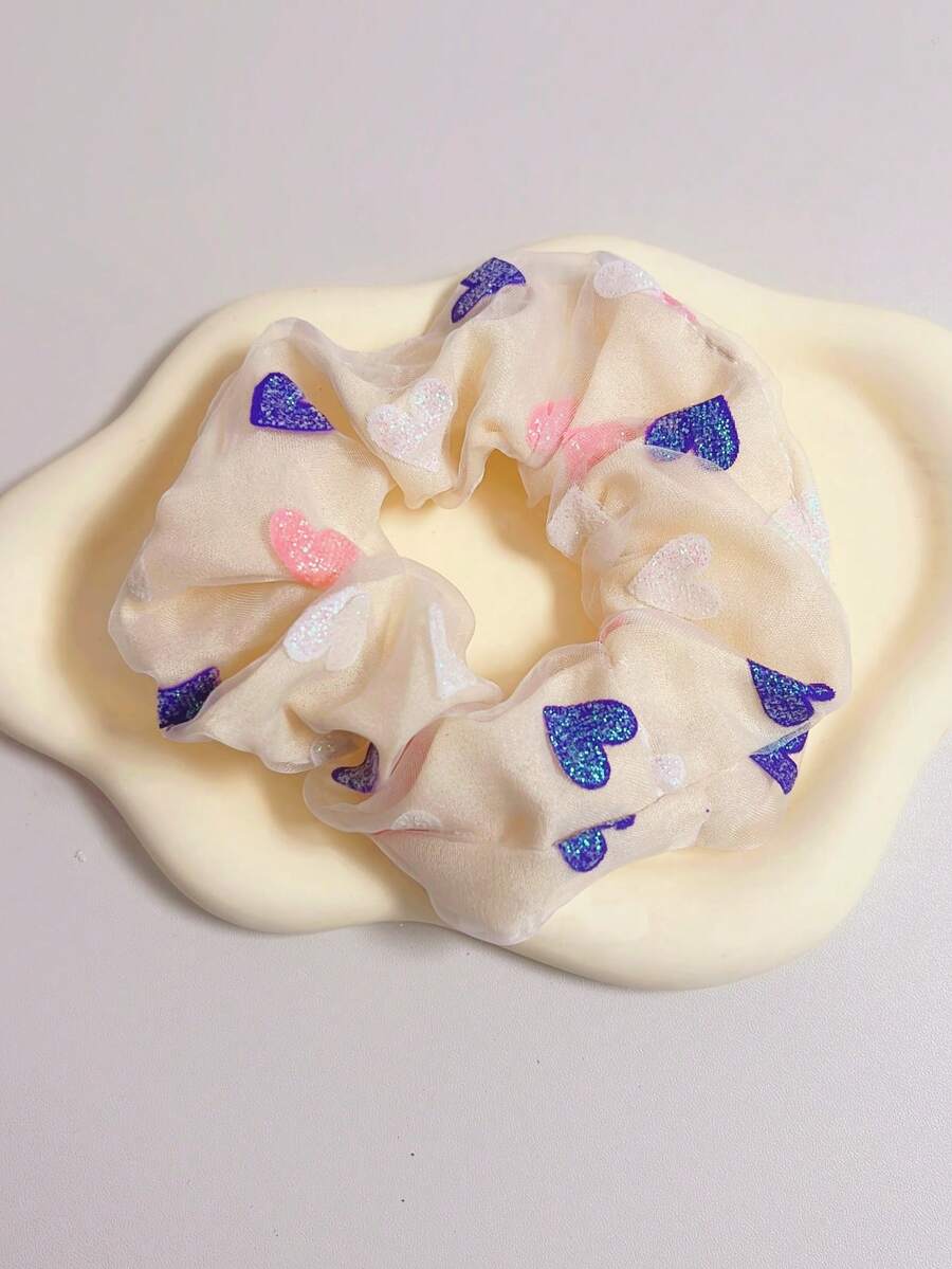 1pc Women'S Yellow Shiny Powder Love Heart Double-Layer Gauze Fabric Hair Band, Fashion Hair Accessories For Valentine'S Day