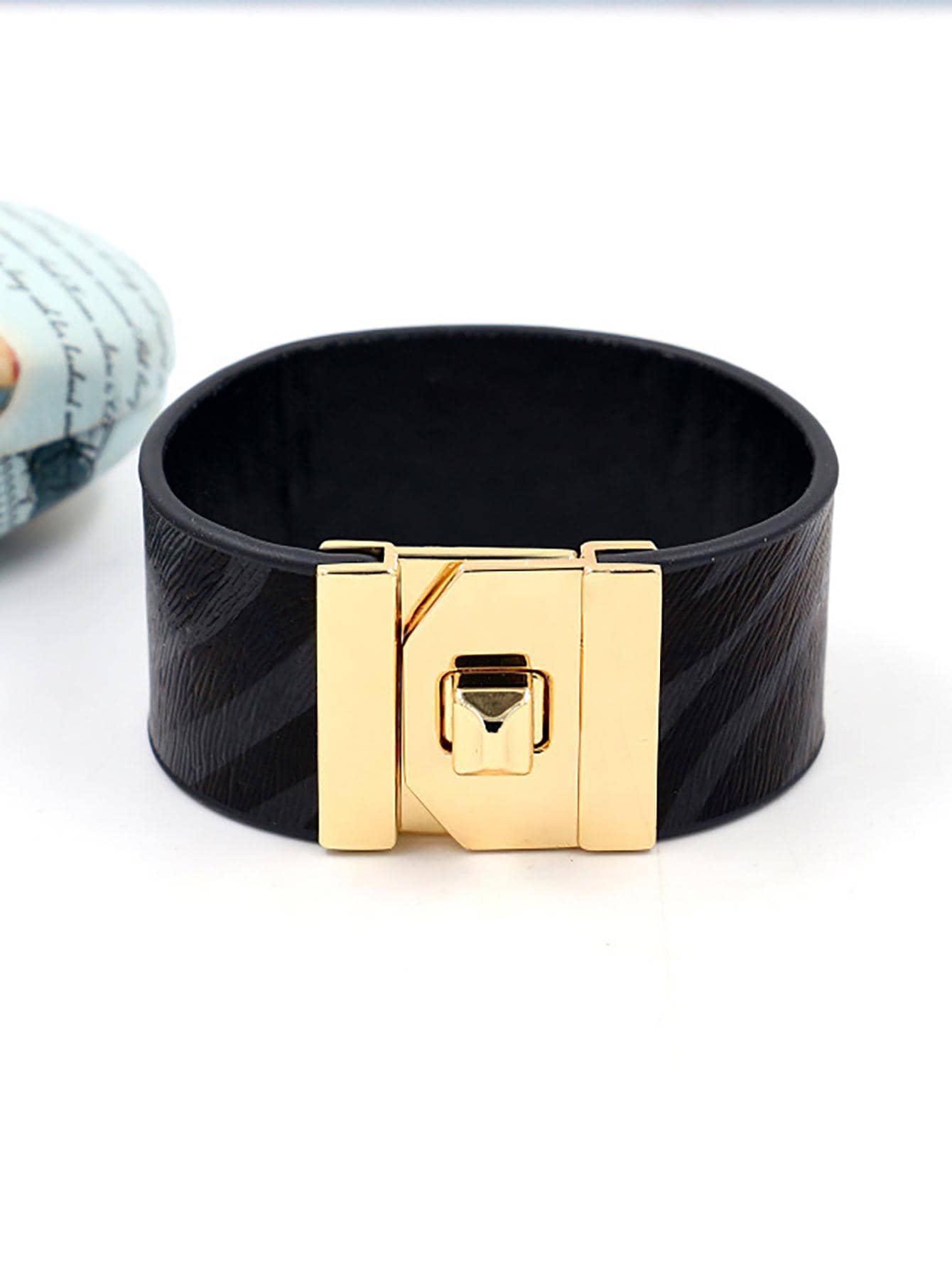 1pc Women'S Zebra Print Bangle Exaggerated Pu Leather Bracelet Simple And Fashionable Lady'S Wrist Jewelry