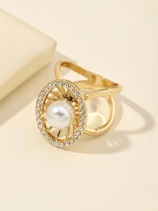 1pc Women'S Zinc Alloy Premium Hollow Out Oval Pearl Fashion Scarf Buckle