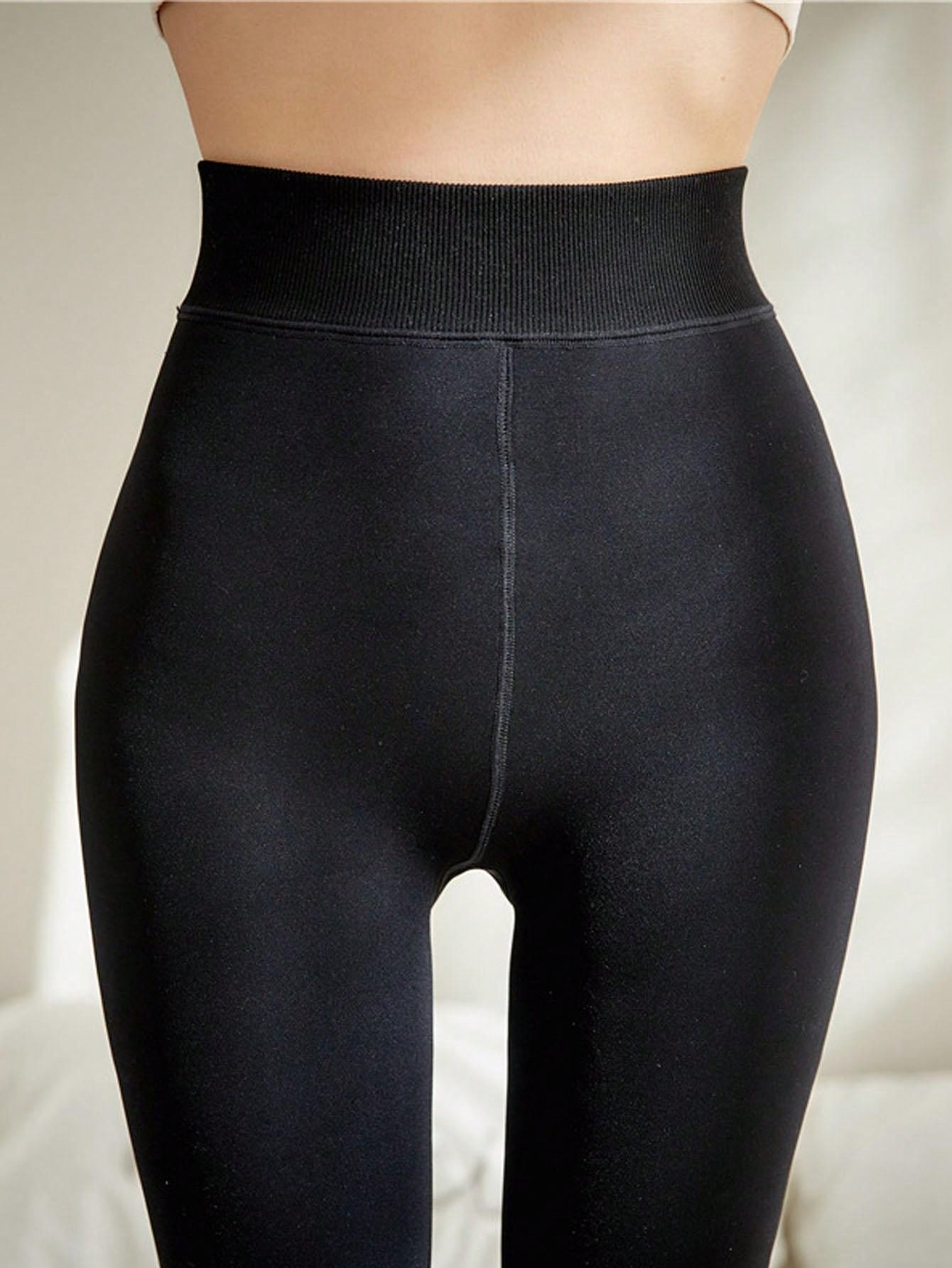 1pc Women's 600d Black Velvet Fleece Lined Footed Tights, Solid Color, Suitable For 15-20°c