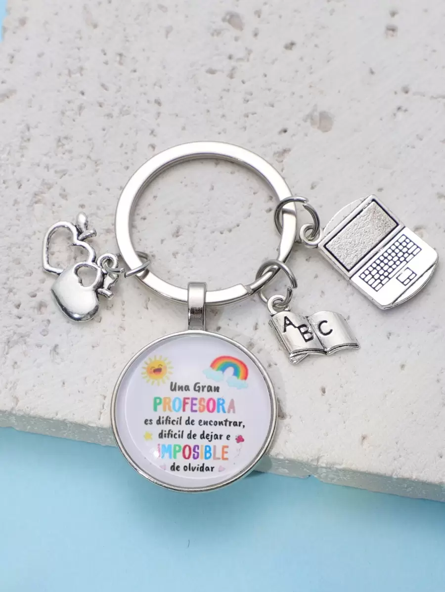 1pc Women's Crystal Sticker Pendant Keychain With Slogan, Teacher's Day