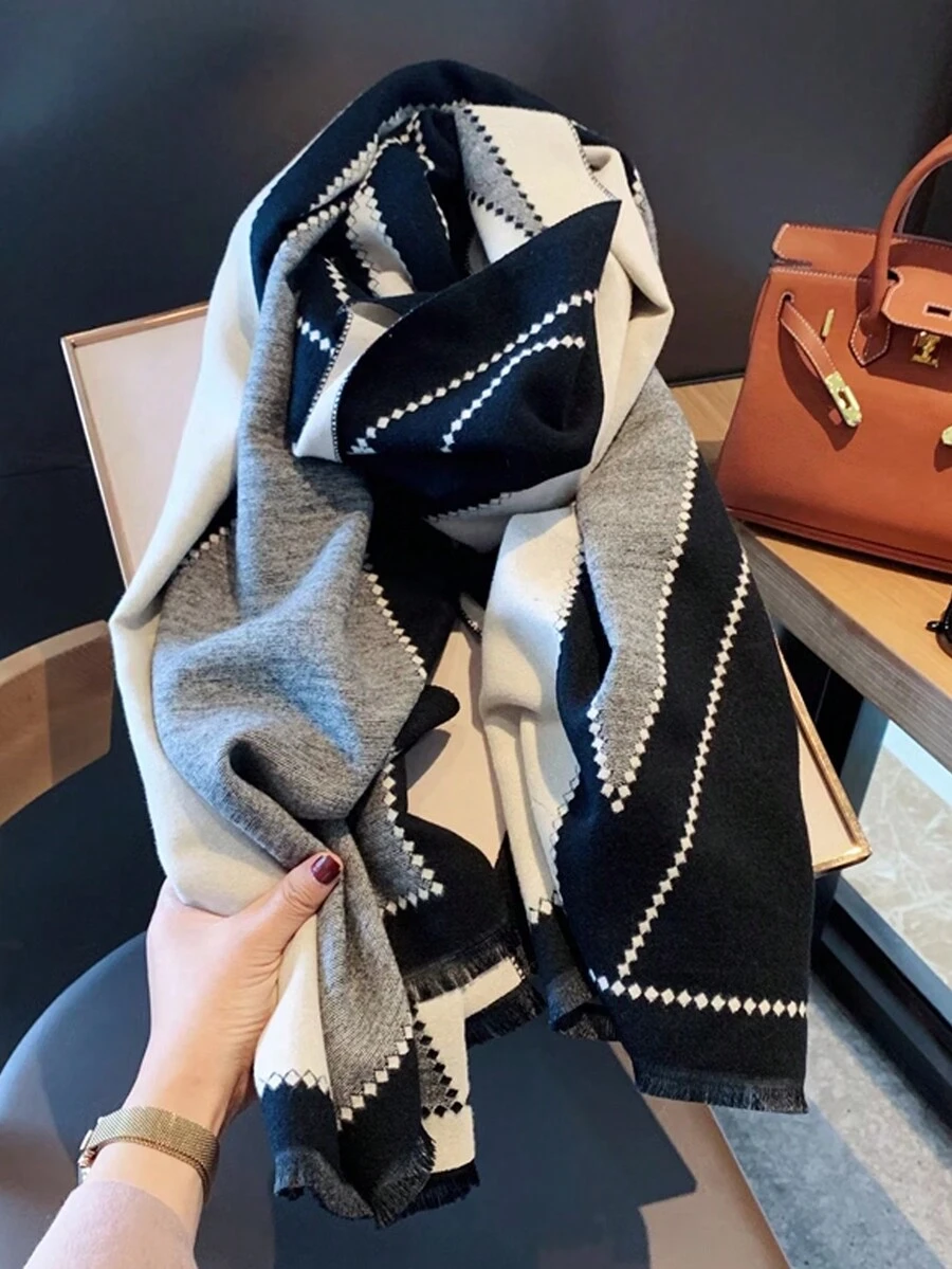1pc Women's Double-sided Letter Detail Tassel Large Shawl, Korean Style, Warm For Autumn And Winter, Suitable For Daily Use By Students