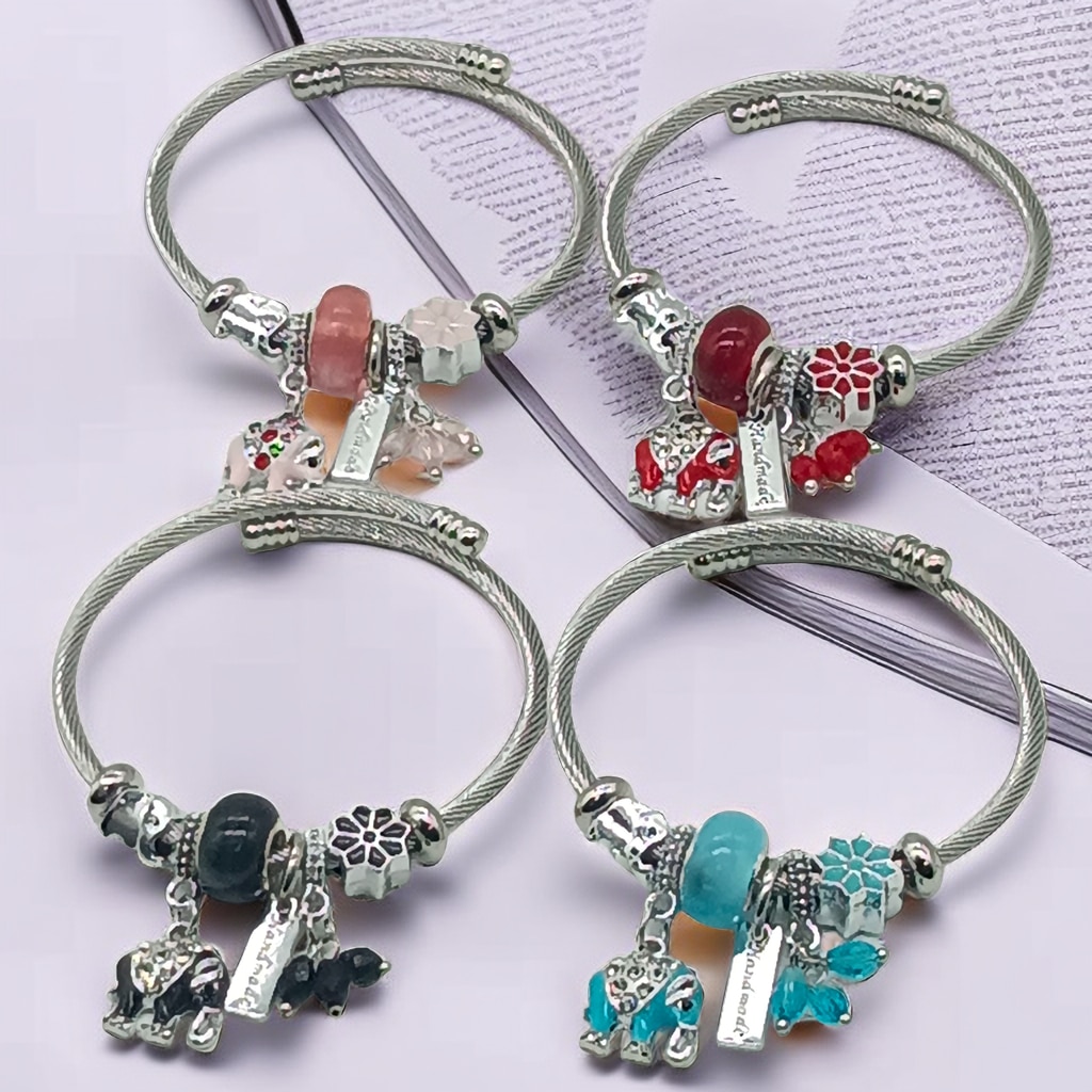 1pc Women's Fashion Alloy And Stainless Steel Bracelet With Elephant Pendant, Adjustable And Suitable For Daily Wear