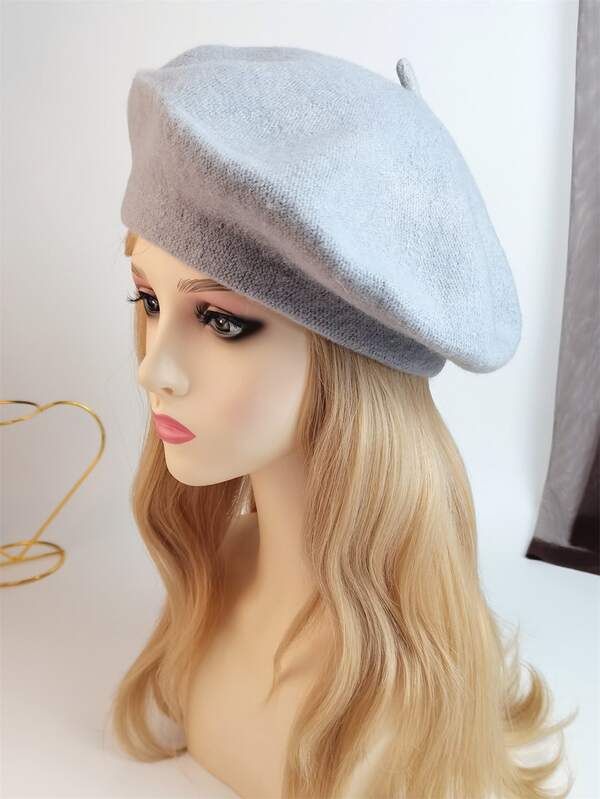 1pc Women's Fashionable Knitted Beret Hat & Painter Hat For Fall/winter, Plain Retro Style Everyday Wear