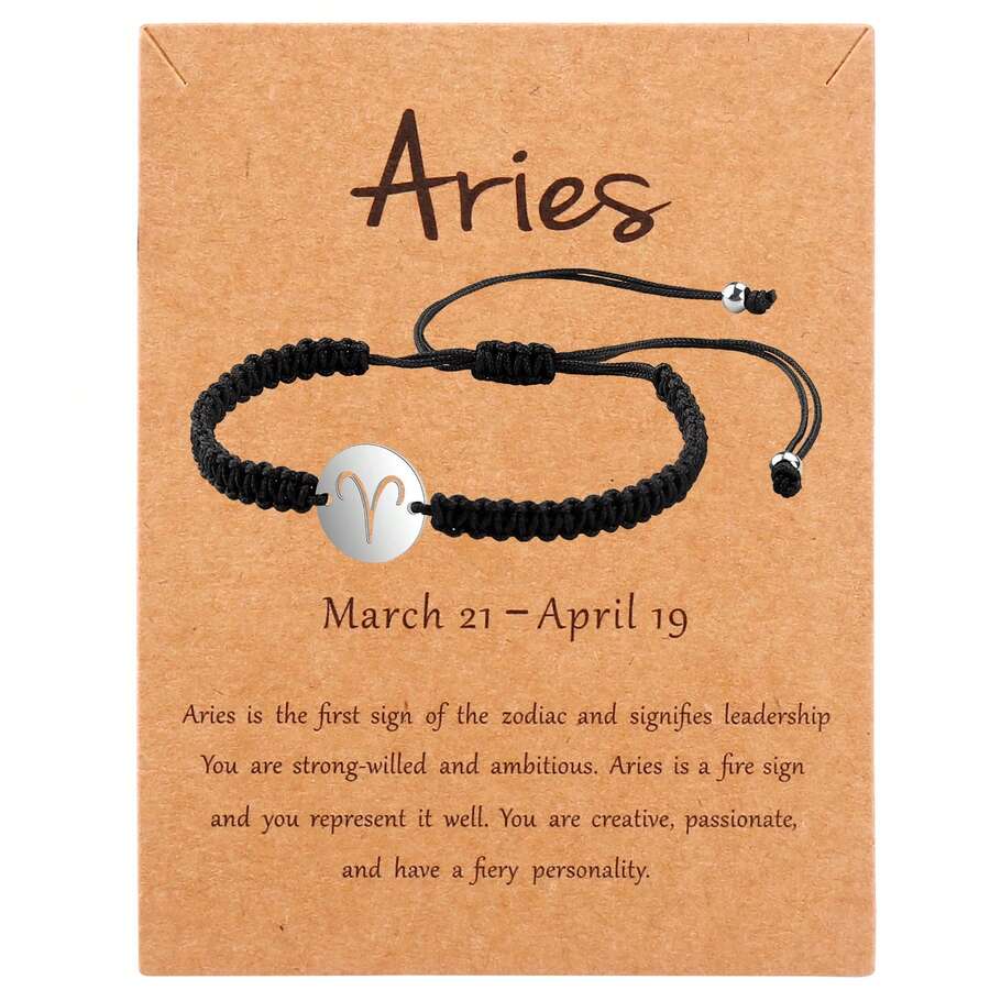 1pc Women's Handmade Woven Stainless Steel 12 Constellations Bracelet With Card For Birthday Gift