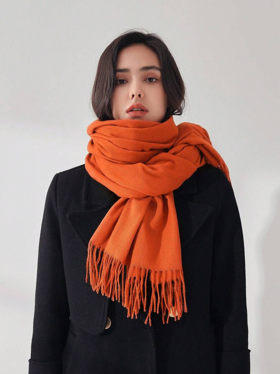 1pc Women's Orange Tassel Faux Cashmere Warm And Versatile Plus Size Scarf/shawl Suitable For Everyday Wear