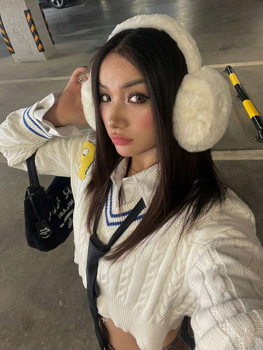 1pc Women's Pure White Plush Foldable Ear Warmers, Thickened And Warm, Suitable For Autumn And Winter
