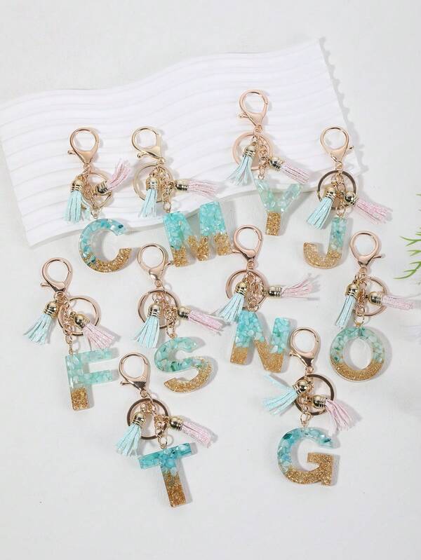 1pc Women's Shell Stone, Crystal & Tassel Keychain With Glued Letters