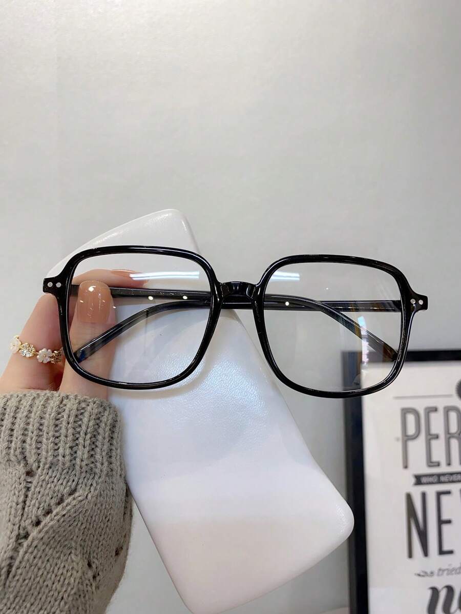 1pc Women's Simple Square Plastic Frame Plain Glasses