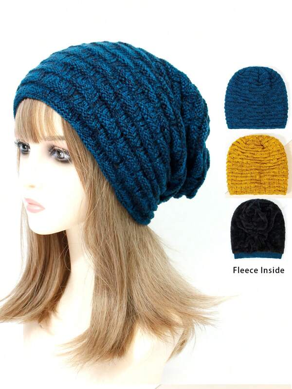 1pc Women's Thickened And Fleece-lined Warm Knitted Beanie Hat For Fall And Winter