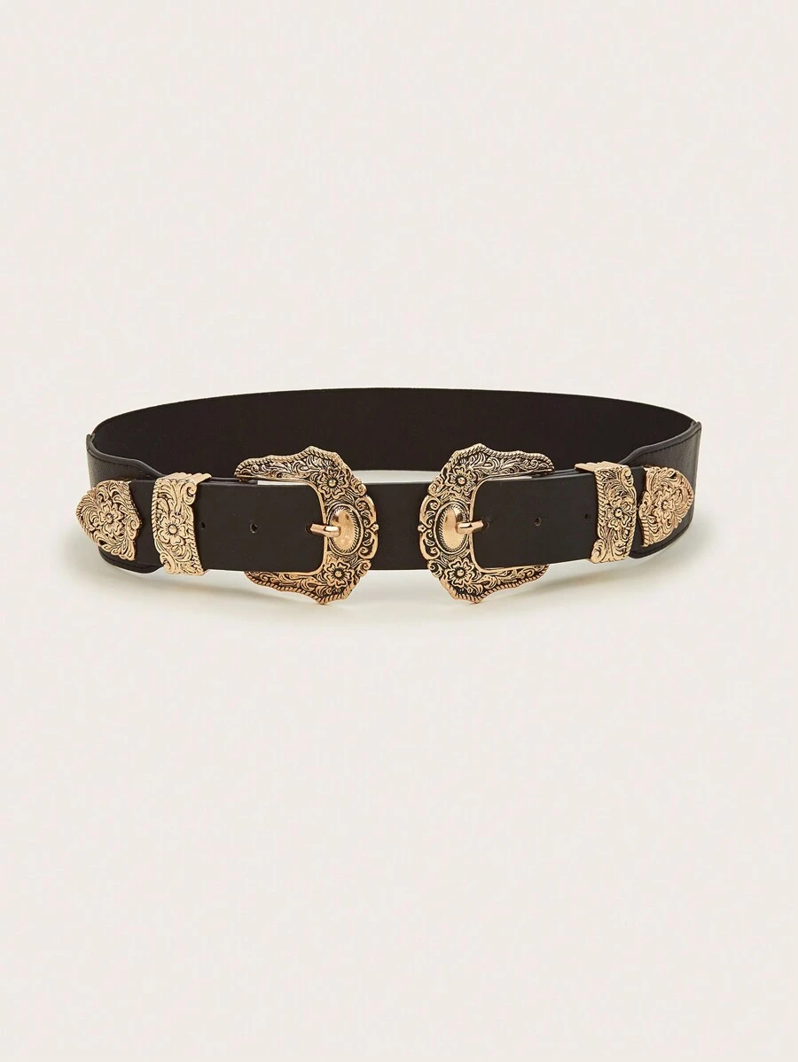1pc Women's Western Cowgirl Style Stretchy Double-buckle Waist Belt For Daily Wear