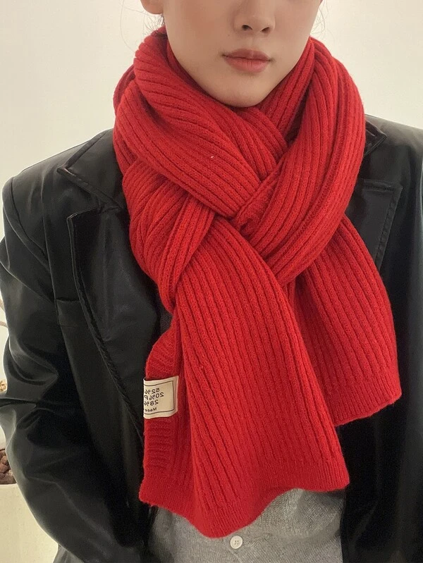 1pc Women Solid Color Knitted Long Scarf For Autumn And Winter Daily Wear
