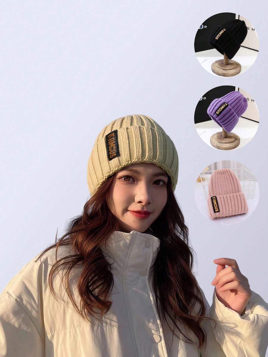 1pc Women's Winter Knit Hat, Korean Style Fashion Long Brim Beanie, Warm Ear Protection Headwrap Cuffed Knitted Cap