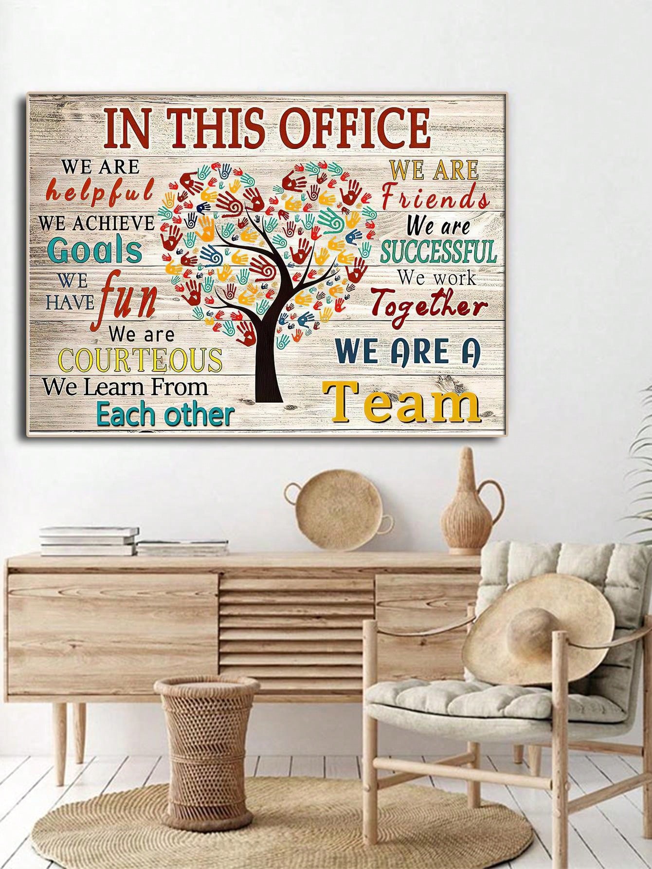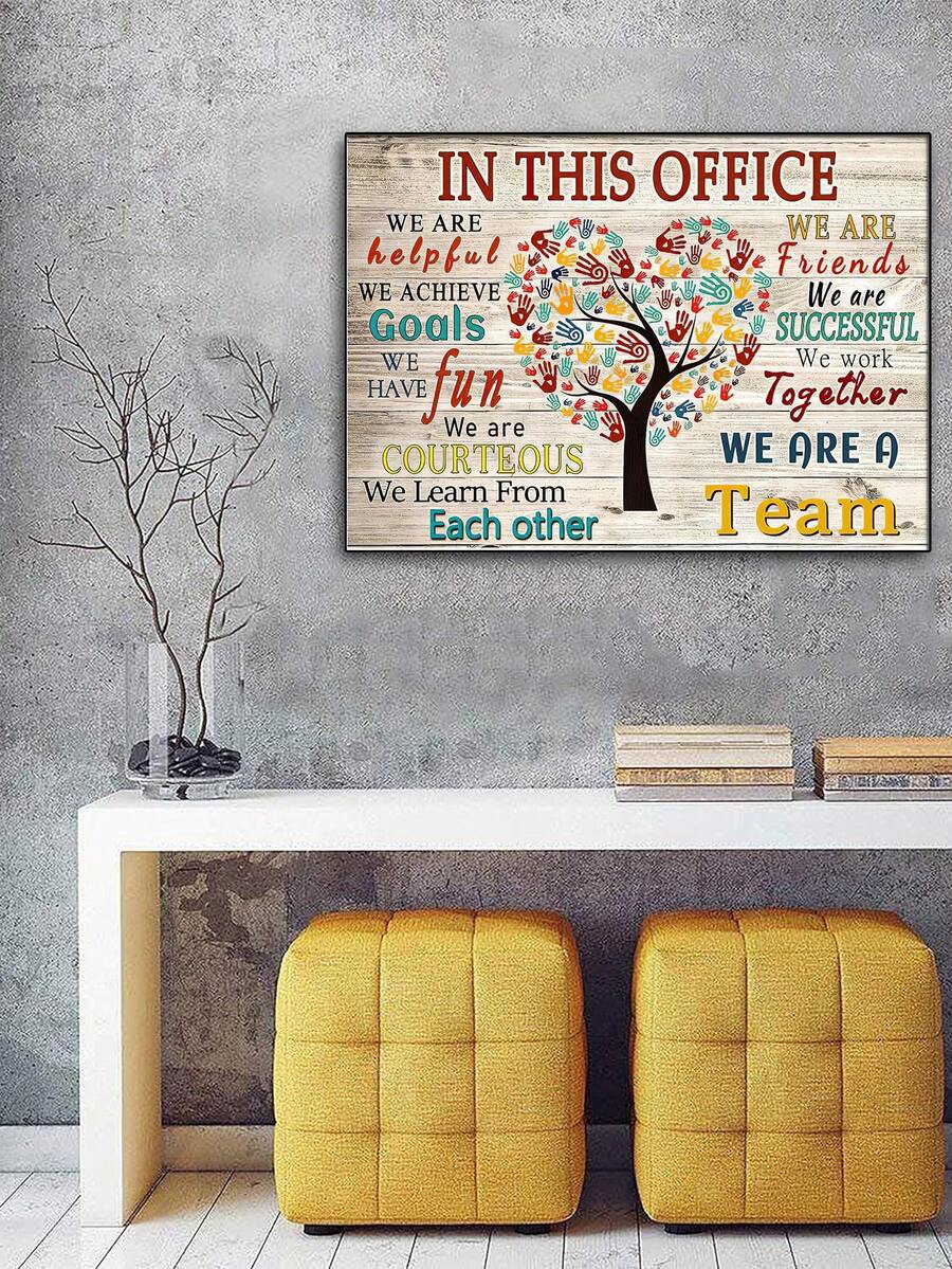 1pc Wood Grain Art Picture Hand, Tree Shape Positive Encouragement Words, English Letter Design Poster Wall Decoration For Bedroom, Living Room, Library, Hallway, Study Room, With Canvas Print