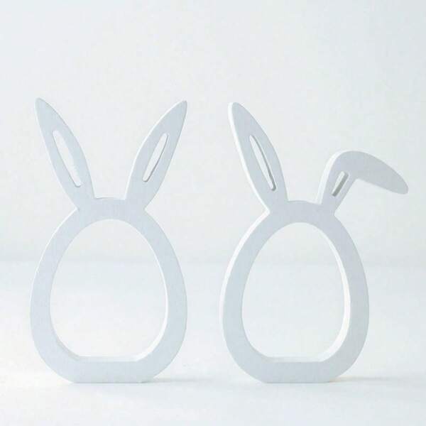 1pc Wooden Easter Bunny Ornament, Cute Rabbit Figurine Decor, European And American Style Home Decoration, White