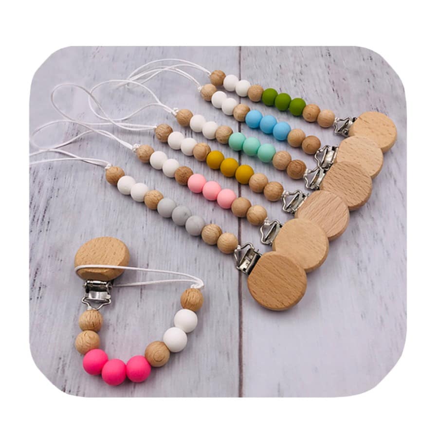 1pc Wooden Flat Pacifier Clip With Silicone Beads, Diy Pacifier Chain, Teether, Anti-lost Dummy Chain For Babies