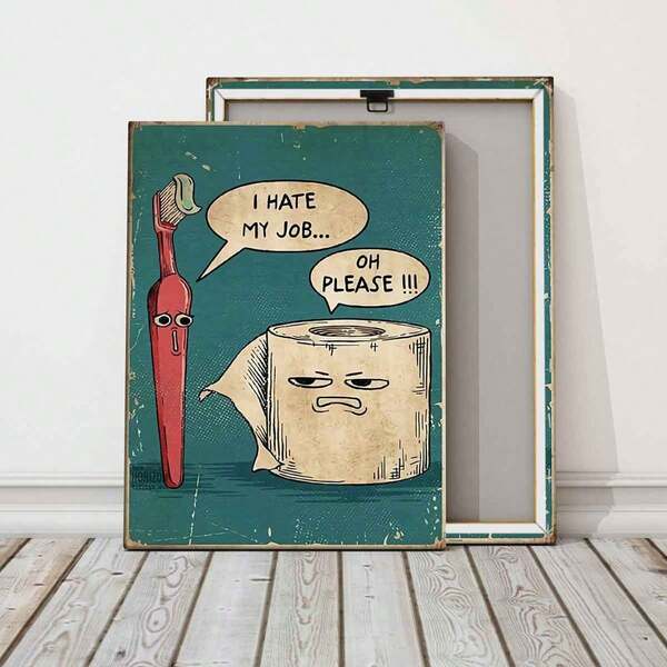 1pc Wooden Framed Canvas, Toothbrush, Paper Towel, Drawing, Canvas Posters, Art For Home Decoration, Pattern Wall Art Decor, For Living Room, Bedroom, Office, Restaurant, Bar Wall Decor, Waterproof, Painting, Print, Artwork.12x16inch