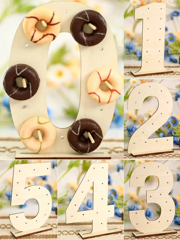 1pc Wooden Number Signs Dessert Candy Bar Doughnut Holder Donut Wall Stand Wedding Birthday Party Supplies Decor