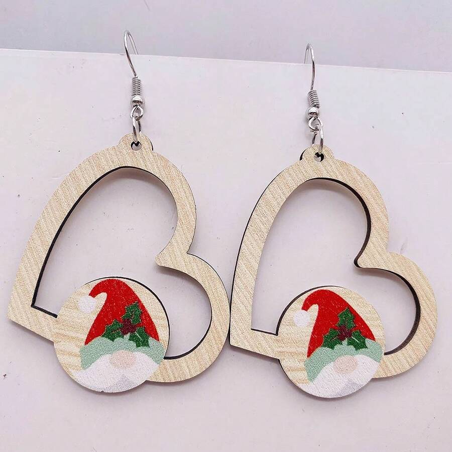 1pc Wooden Peach Heart Shaped Christmas Earrings For Men And Women, Suitable For Christmas And Daily Wear