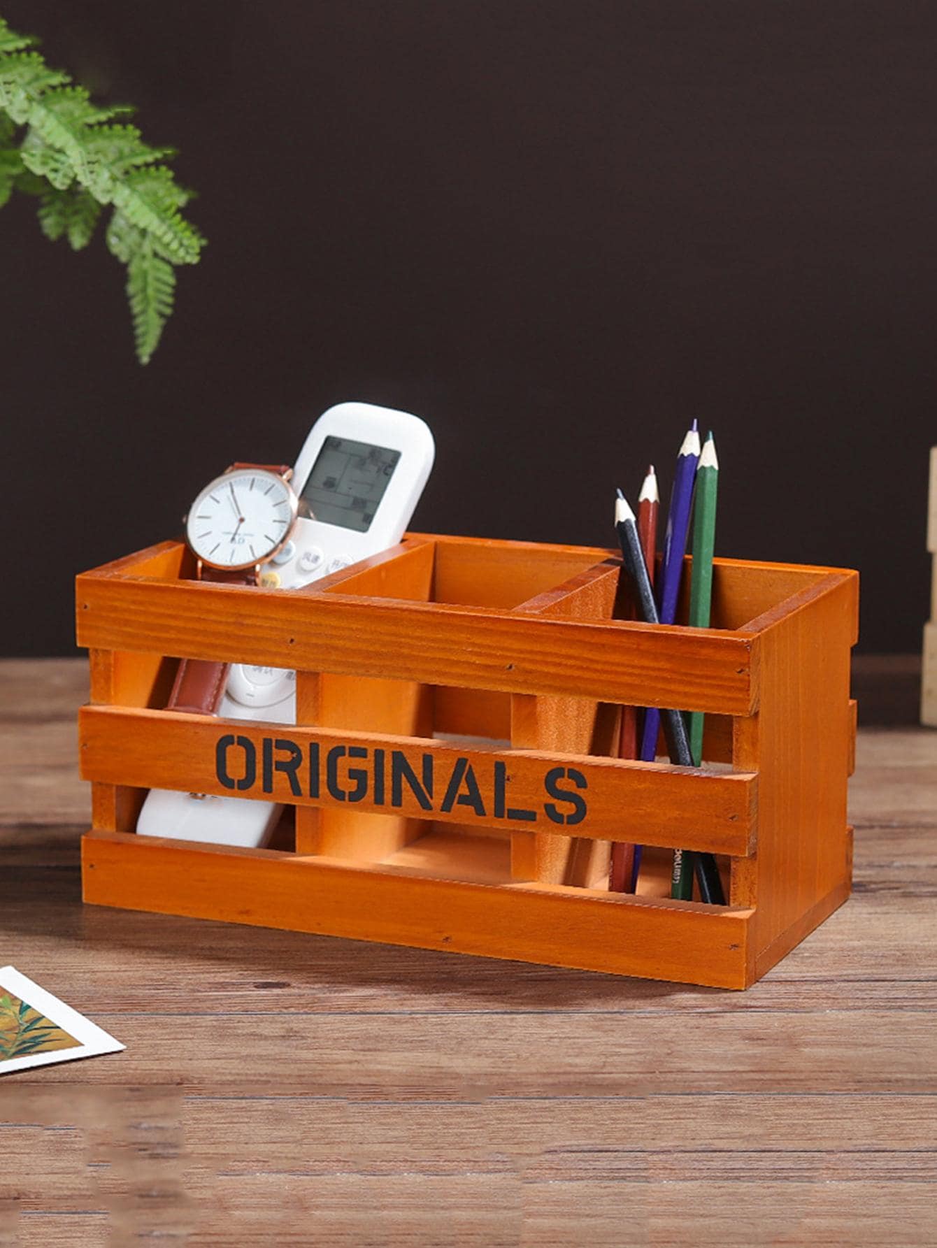 1pc Wooden Storage Box, Fashionable Letter Graphic Multi-function Storage Bin For Office
