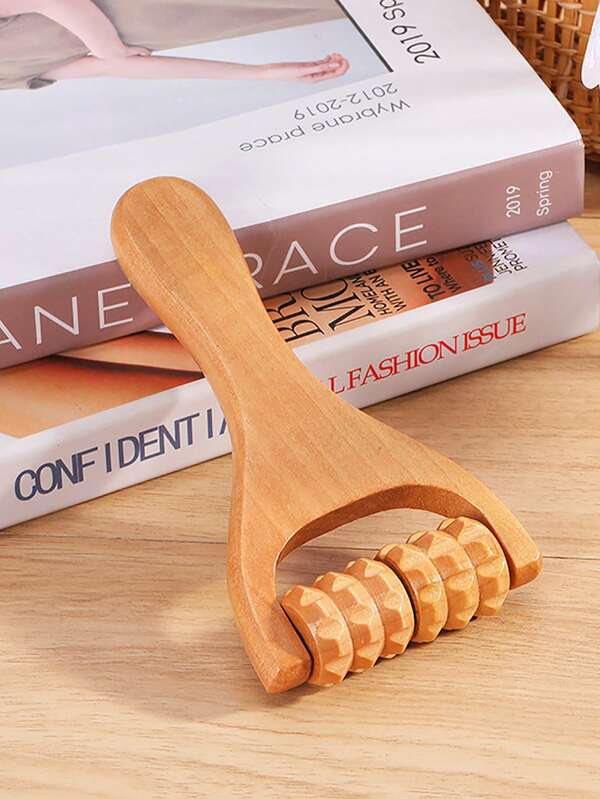 1pc Wooden Toothed Massager, Handheld Roller Massager