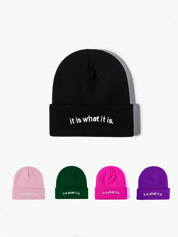 1pc Y2k Style Dark Purple Ski Hat With It Is What It Is Embroidery, Unisex Knitted Beanie For Outdoor, Winter