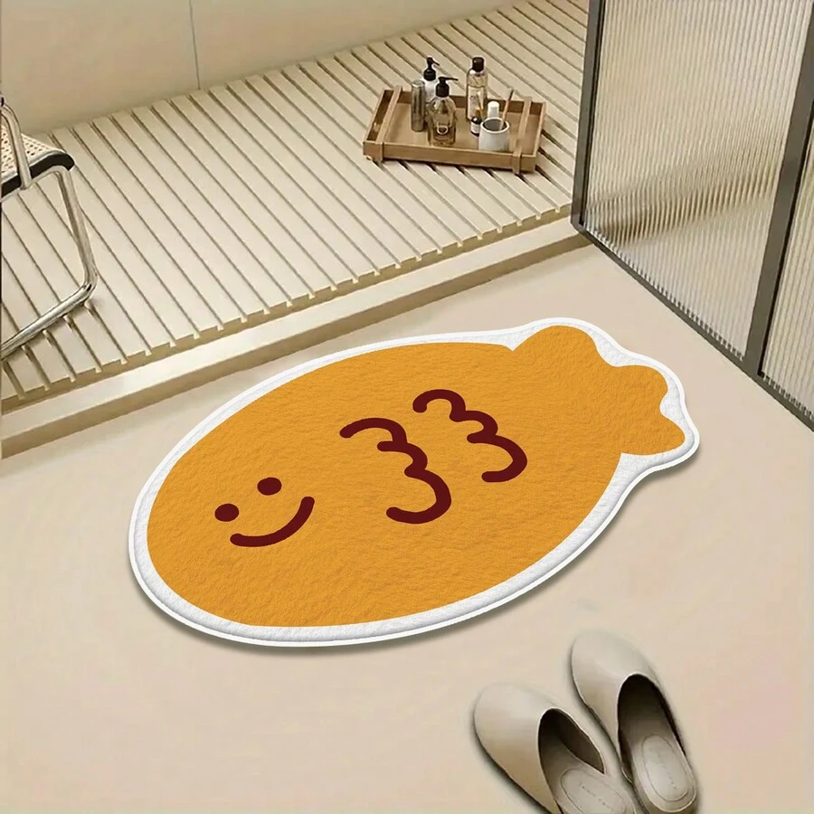 1pc Yellow Fish Shaped Soft Faux Cashmere Fabric Washable Anti-Slip Rug, For All Indoor Areas Such As Bathroom Door, In Front Of Bathtub And Shower Room, Easy To Clean