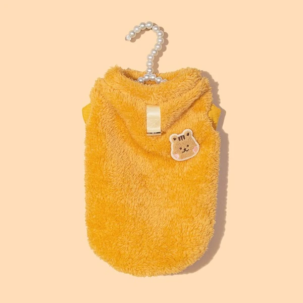 1pc Yellow Fleece Vest With Bear Pattern For Cats And Dogs, Suitable For Indoor And Outdoor Activities