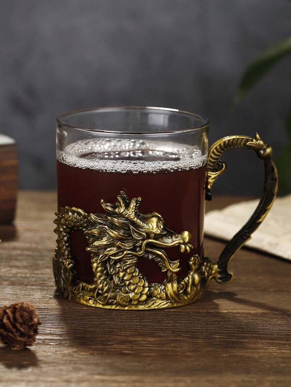 1pc Zinc Alloy Dragon Shaped Beer Mug With Handle, Vintage Chinese Style, Lead-Free Glass Heat Resistant Cup For Personal Use, Parties And Celebrations