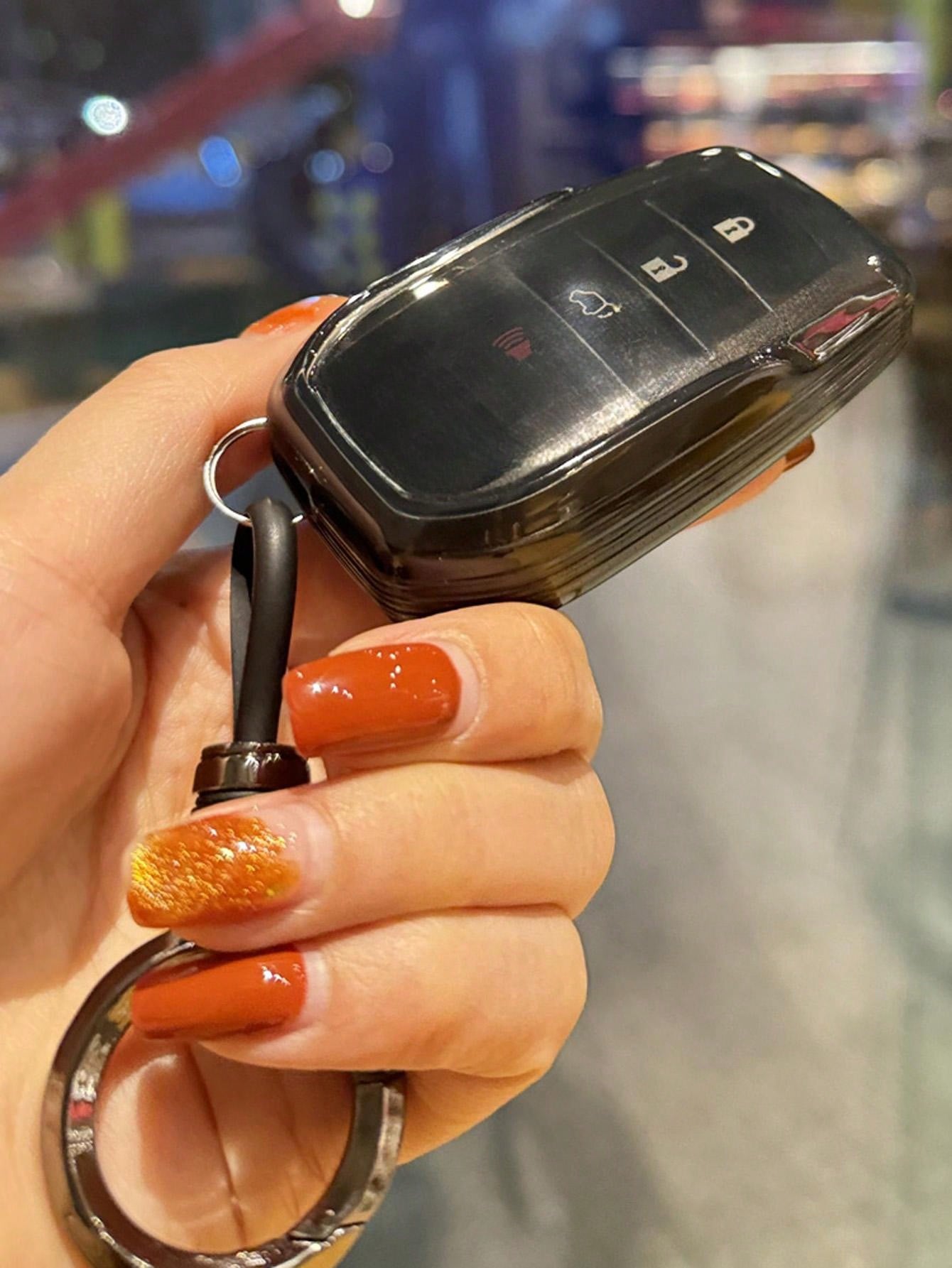 1pc Zinc Alloy Keychain & Tpu Black Car Key Case, Fashionable Anti-Fall Key Protector Suitable For Toyota