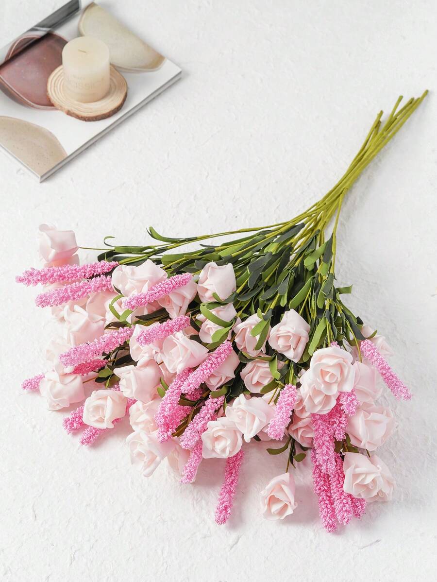 1pc/3pc Artificial Flower Decoration Plastic Flower Home Wedding Decoration Artificial Flower Rose Head Fake Flower