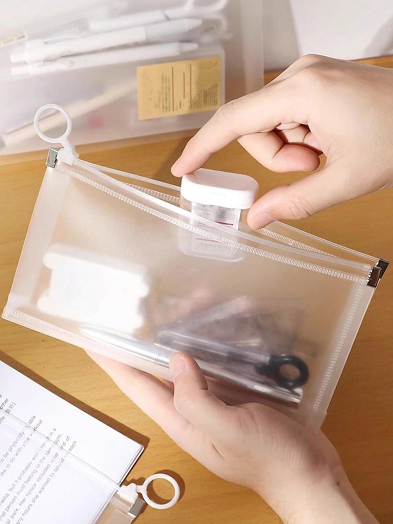 1pc/3pcs A4 Transparent Zipper Closure Stationery Pouch For Document Organizing, Exam/Office Supply Bag, A5/B6 Frosted Book/Document Bag For Dustproof And Waterproof Protection, Desk Organizer Set For School