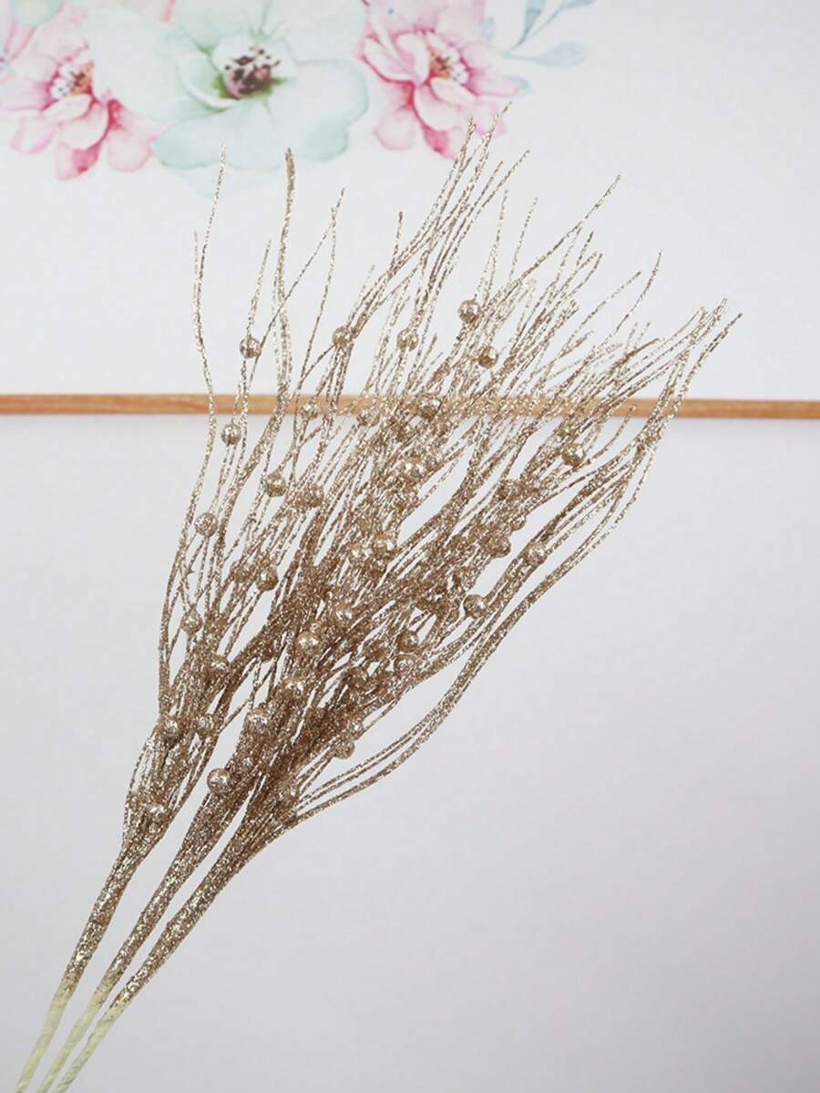 1pc/4pcs Artificial Glittering Plant Branch With Berries And Cute Flowers Christmas Tree Decorations, Suitable For Christmas, Weddings, Parties, Gifts And Diy Decoration Accessories