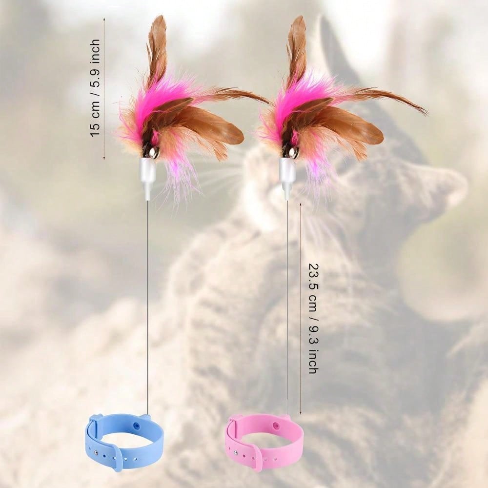 1pcs Cat Teaser Toy, Cat Wand Toy Retractable Cat Feather Toys With Silicone Collar Interactive Cat Toys For Indoor Cat Kitten Exercise