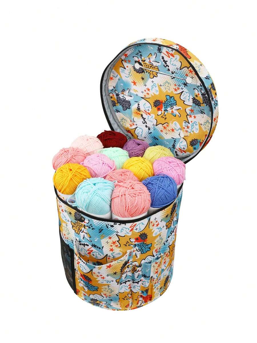 1pcs Printed Patterns Creative Various Options Yarn Wool Storage Bag Cylinder Bag Polyester Preparation Tool Storage Bag Home Daily Use Christmas, Easter Storage Empty Bag