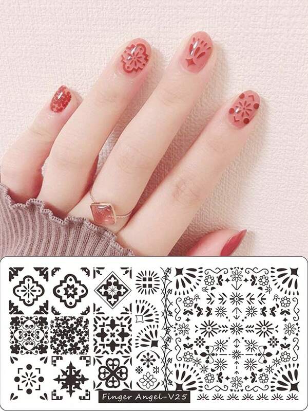 1pcs6*12cm Nail Art Printing Steel Plate Stainless Steel Transfer Template Symmetrical Pattern Graphic Pattern Nail Art Diy Transfer Template Tool Finger Angel-V25