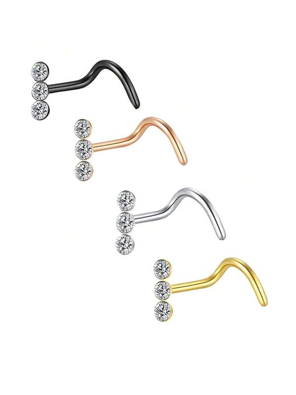 1piece Stainless Steel 20G Nose Stud Nose Piercing Nose L Shape Studs Cz Inlaid Opal Nostril Nose Piercing Jewelry Women Punk Gift