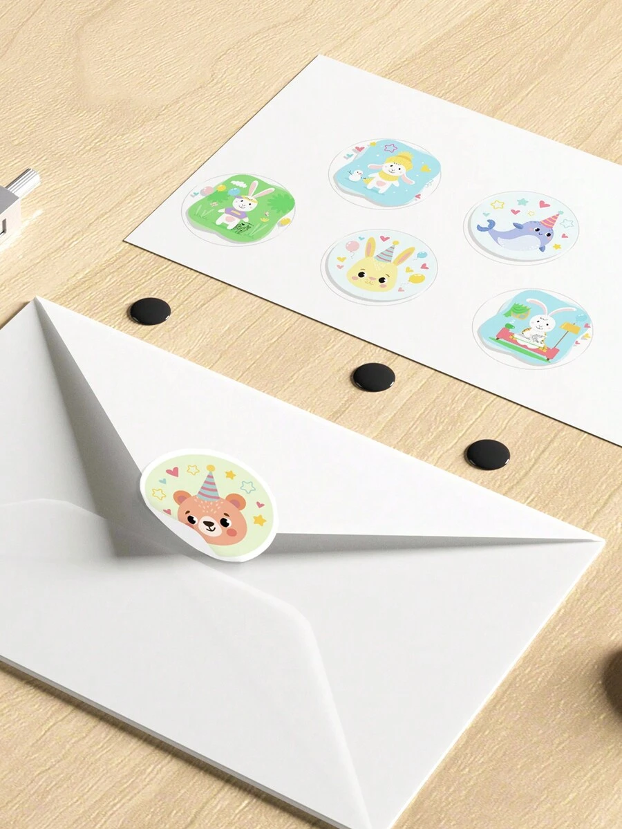 1roll Cartoon Rabbit, Dolphin & Animal Motivational Stickers, 3.8cm 250pcs