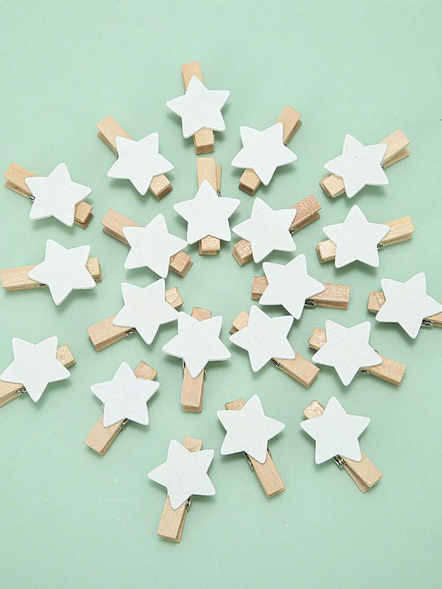 1set 10pcs Star Shaped Mini Wooden Clips For Decoration