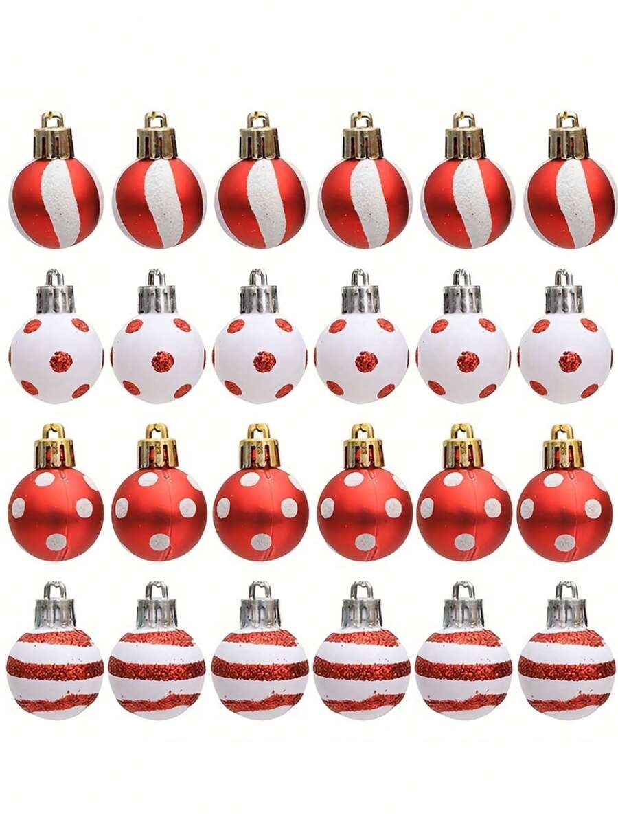 1set 24pcs Mini Painted Christmas Balls 3cm Decorations For Christmas Tree Or Gifts