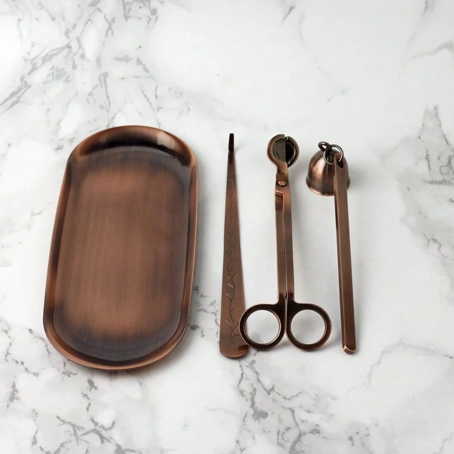 1set 4pcs Stainless Steel Dipper Cutter Snuffer Candle Wick Trimmer, Matte Black Gold Silver Rose Gold Engraved Candle Care Kit Candle Tool Set, For Aromatherapy Candle, Home Decoration