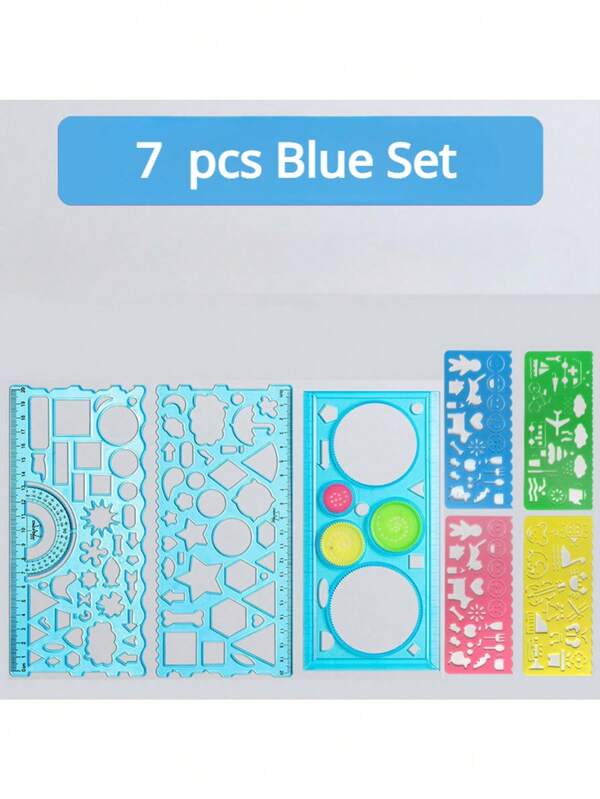 1set 7pcs French Curve Stencil Set With Circle & Spiral Template Stencil For Drawing, School Project