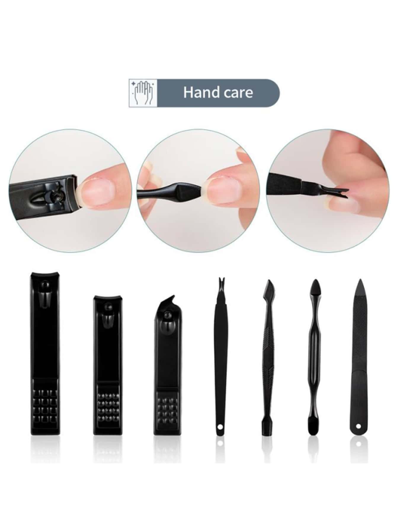 1set Classic Black Manicure Set Hand Feet Facial Stainless Steel Accessories