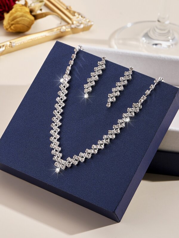 1set Claw Chain And Rhinestone Decorated Necklace And Earrings Jewelry Set