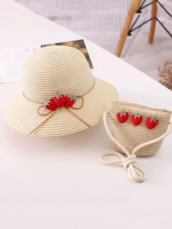 1set Girl'S Hat Strawberries Printed Princess Sun Hat With Sun Protection And Bag For Outdoor/Beach Activities, Cute And Suitable For Daily Wear