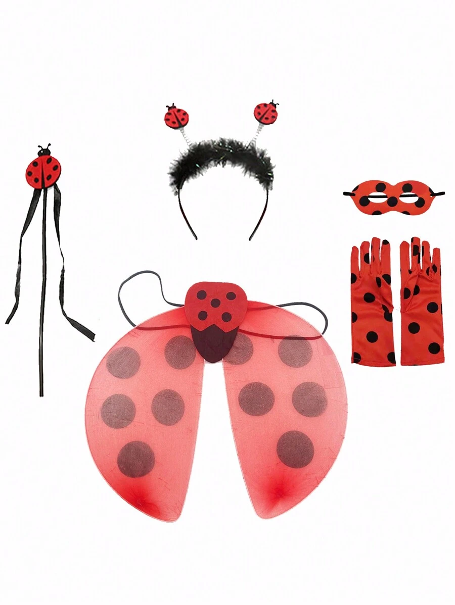 1set Ladybug Design Children Wing, Headband, Gloves And Eye Mask Set For Cosplay Party