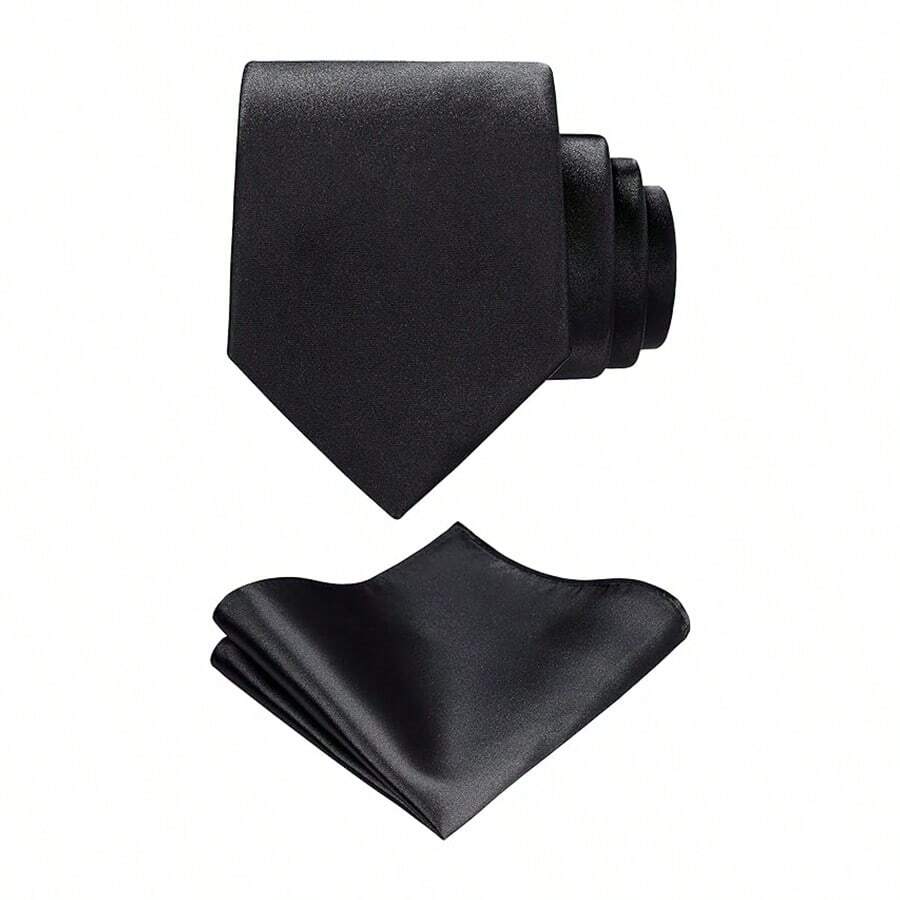 1set Men's Solid Color Satin Tie & Pocket Square Set, Business Necktie & Handkerchief Collection